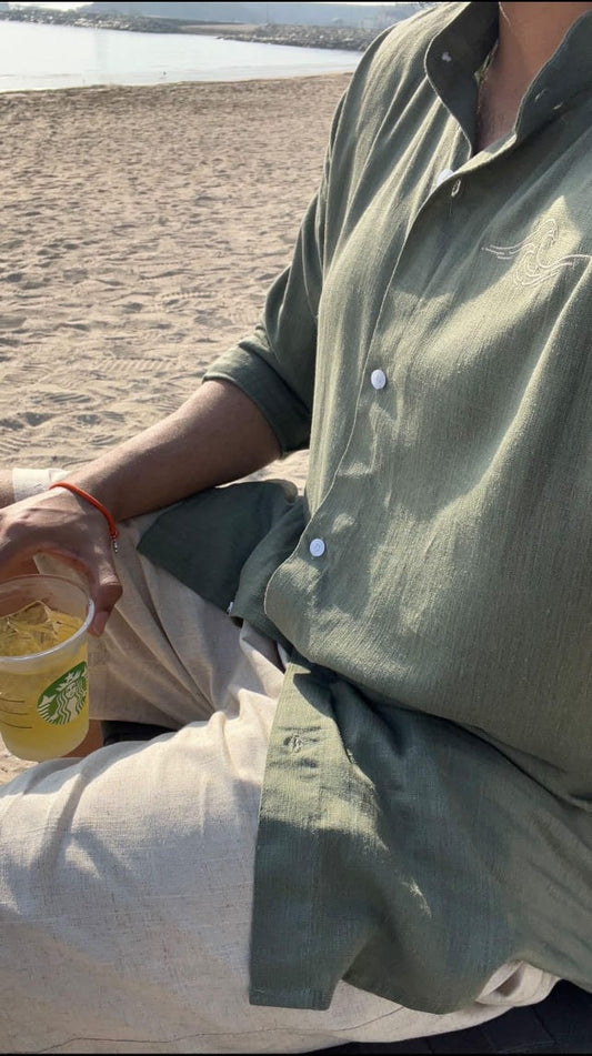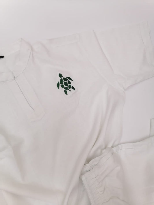Linen Aqua blue tshirt short sleeve & neve blue short